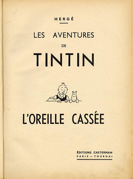 L’Oreille cassée, page de titre de l’édition de 1937. Il n’y a pas d’indication de mille.