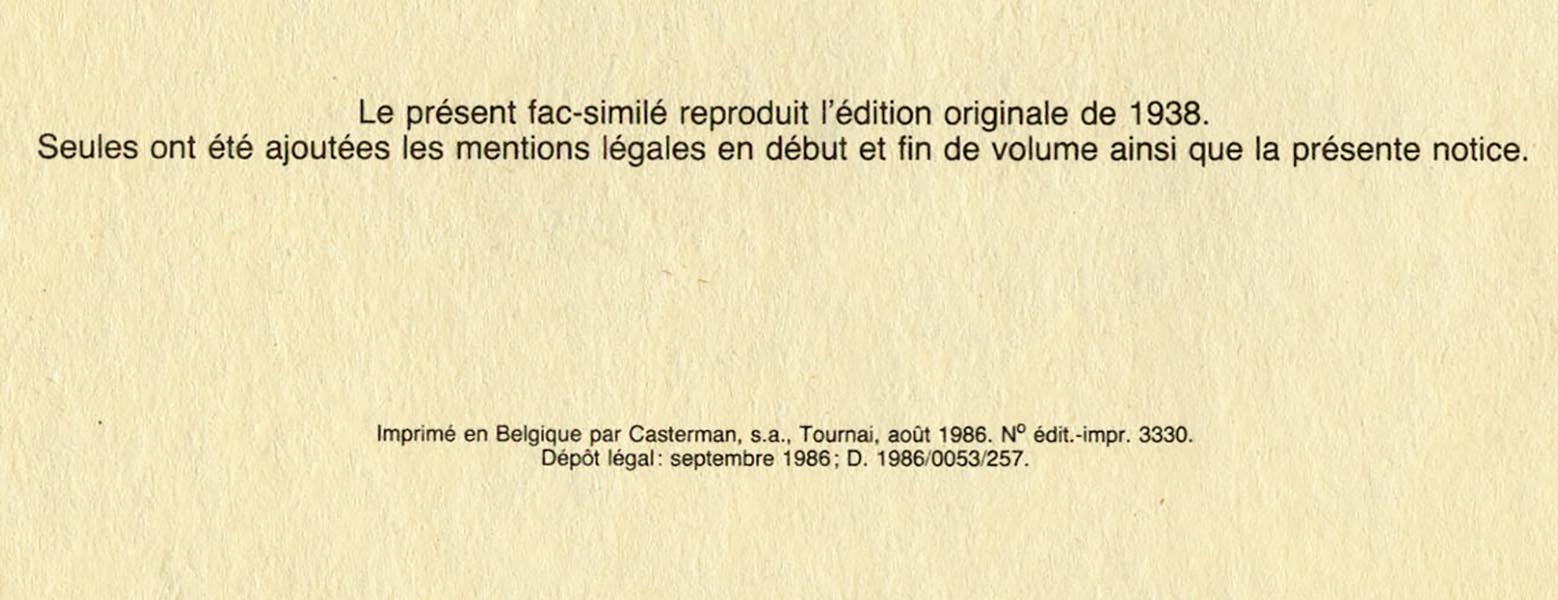 Sur la dernière page, on trouve ces mentions légales, preuve qu’il s’agit bien d’un fac-similé.