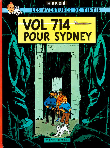 - Dos carré rouge avec titre imprimé : “Hergé - Les aventures de Tintin / Vol 714 pour Sydney”